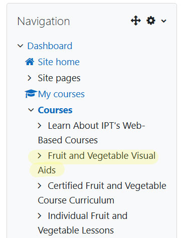 - Locate the library under the “Fruit and Vegetable Visual Aids” section on the left-hand menu.